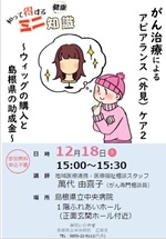 12月18日(木)に【知って得する健康ミニ知識】を開催します。テーマは「がん治療によるアピアランス(外見)ケア2~ウィッグの購入と島根県の助成金~」です。