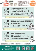 申し込み不要、参加費無料です。ミニ知識へのご参加で記念品と交換するポイントカードも配布しています。大勢の方のご参加をお待ちしております。
